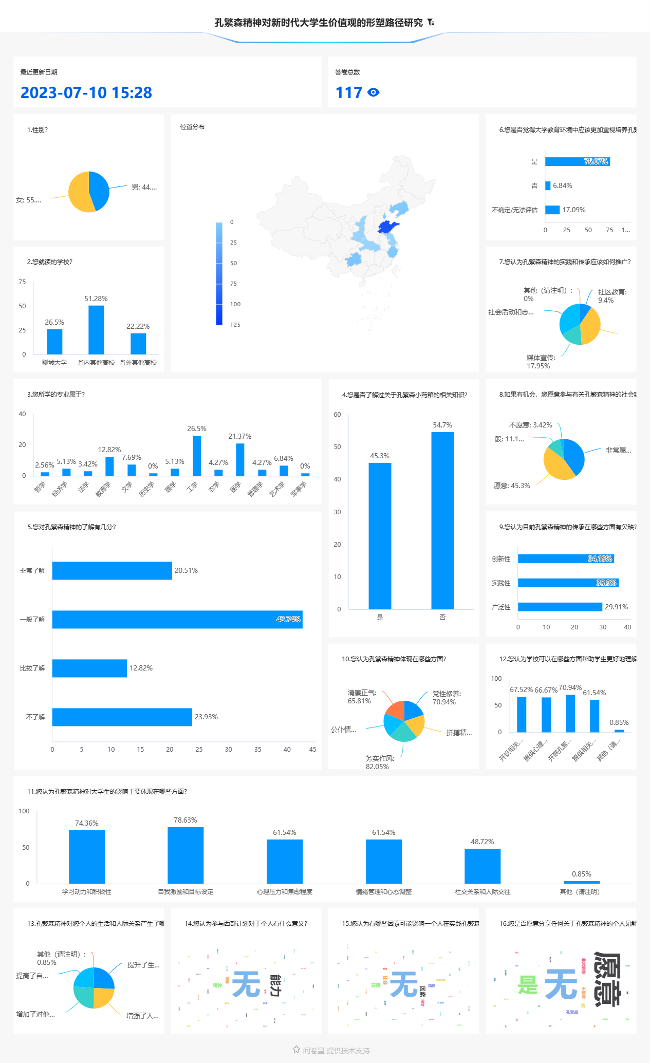 “学繁森精神,葆清风正气”服务队采用线上线下结合的方式,开展本次暑期社会实践调研活动。活动准备阶段,服务队队长组织队员开展线上会议,明确本次活动的调查主题以及调查内容,商讨活动形式,队员分工明确,并完成准备工作。随后,服务队分为线上、线下两个小组,分别在网络上发放调查问卷、在各大高校展开线下采访,记录并分析大学生对孔繁森精神的了解情况。