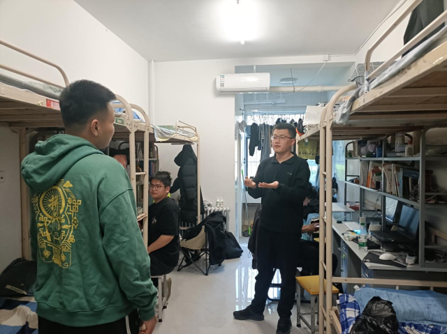 组织开展留校学生宿舍走访活动,辅导员史秋波、冯昌顺深入学生宿舍,为留校学子送去温暖与关怀。